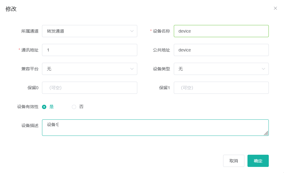 在刚刚创建的转发通道下,新增一个转发设备,自定义设备名称,其余参数保持默认即可。
