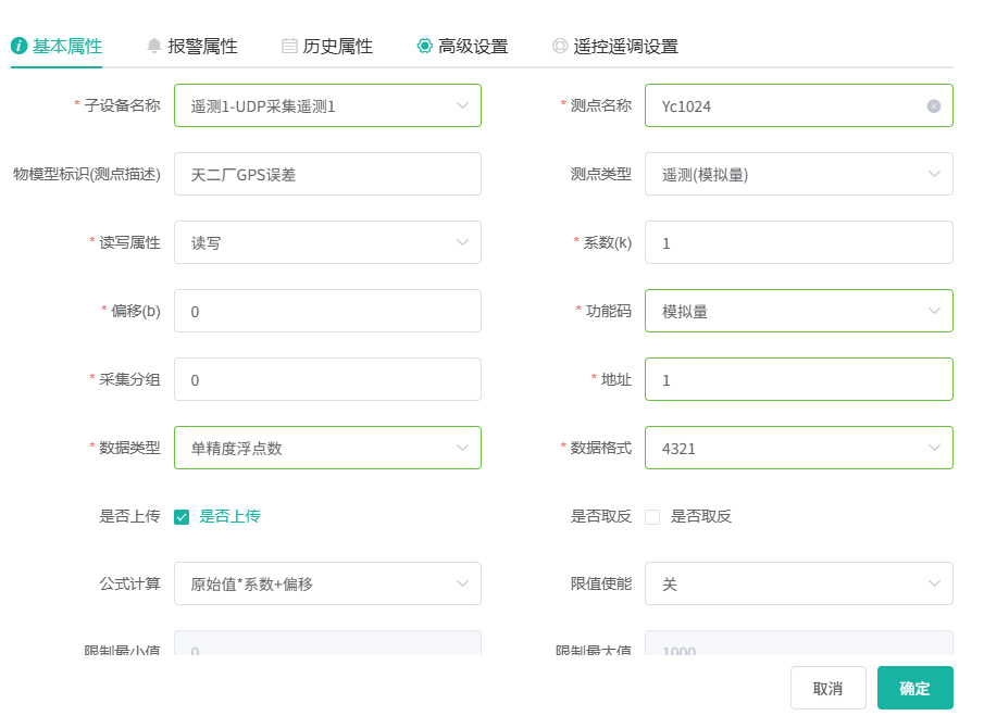 注意:选择单精度浮点数时,数据格式4321,如果服务器上的地址从1开始,测点地址必须是4的整数倍+1。