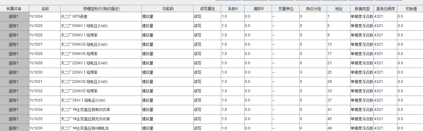 如果测点采集功能码为测量值则设定数据类型为单精度浮点数,数据格式为4321,地址填写相应的起始地址。
