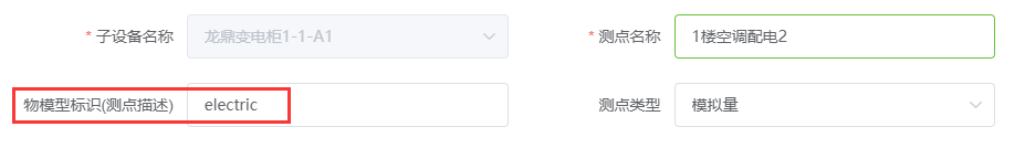 ID类型配置默认物模型标识(测点描述),设备ID类型默认设备描述;