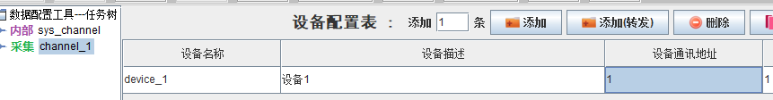 进入任务树的采集通道,新建一个设备,自定义设备名称,设备通讯地址填写设备地址,其余参数无需考虑。