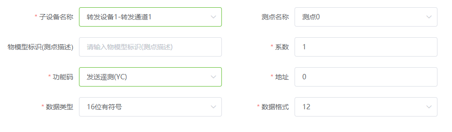 新建一个转发测点,转发功能码根据实际情况选择,然后填写测点的地址,其余参数保持默认即可;