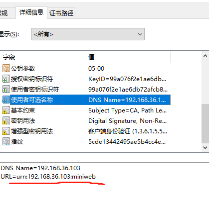 证书URL的查看方法有2中,在window上,如果系统能够识别的话,直接双击证书,在弹出的信息框中可以找到如下的信息: