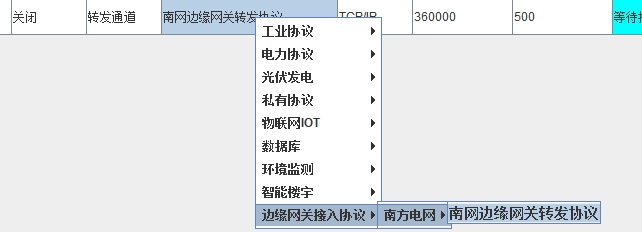 新建一个转发通道,协议选择南网边缘网关转发协议,主参数中,IP地址不用配置。端口号按实际填写,一般保持默认即可;