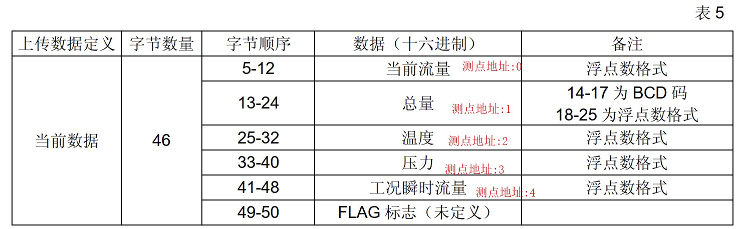 测点的地址按照《天信流量计通信协议及数据解包方法》中定义的数据顺序来排序,协议中的点表见下面两张图片。