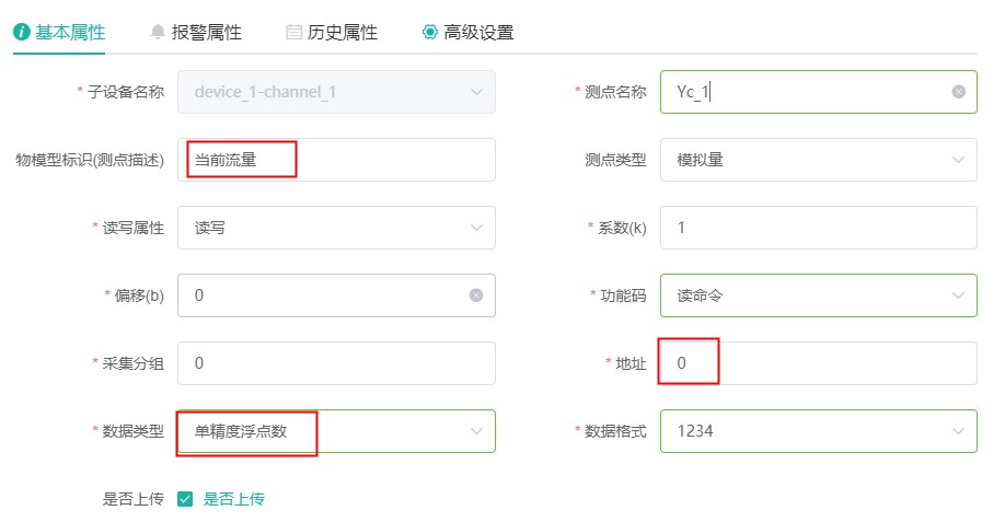 新建一个设备,自定义设备名称,通讯地址填写天信流量计的子机号,其余参数留空即可。