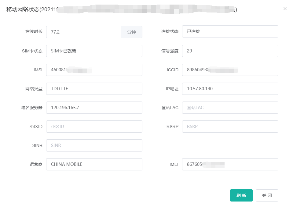 | ICCID | 网关内用于上网的SIM卡的ICCID |